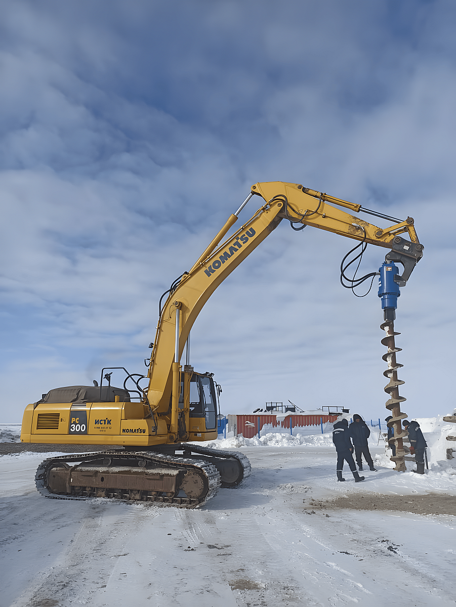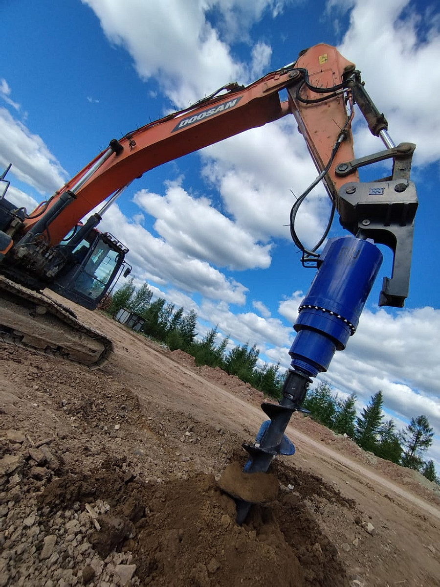 Гидравлический бур для земляных работ используется для быстрого бурения колодцев и скважинных колонн, монтажа подземных кабельных линий, установки свай винтового типа. Навесное оборудование устанавливается на мини-погрузчик, экскаватор, кран-манипулятор с гидравлической линией. Гидровращатели от компании «Решке Рус» совместимы со спецтехникой ведущих производителей: Komatsu, Caterpillar, Doosan и прочими. Гидробуры в сочетании с системами нивелирования и позиционирования позволяют значительно увеличить производительность экскаватора.