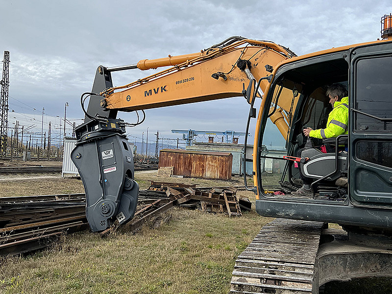 Гидроножницы для экскаватора VTN серии RP – гидравлический рельсорез, разработанный для обслуживания и модернизации железных дорог и метрополитенов. Оснашены специальным поворотным устройством Heavy Duty и специальным механизмом челюстей, который позволяет резать рельсы плотностью до 75 кг/м.