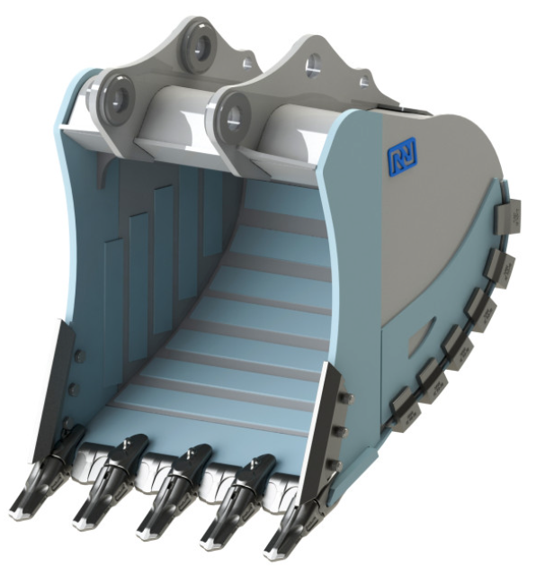 Ковши скальные сверхусиленные применяются для работ с грунтами высокой плотности, в том числе мерзлым. От стандартных моделей они отличаются дополнительной защитой боковин и дна, а также футеровкой из износоустойчивой стали. Подверженные истиранию элементы могут быть изготовлены из износостойкой стали повышенной прочности. Ковши оснащены протектерами для защиты боковины, установлена защита бокового шва и межзубьевая защита Такая конструкция снижает степень износа навесного оборудования.