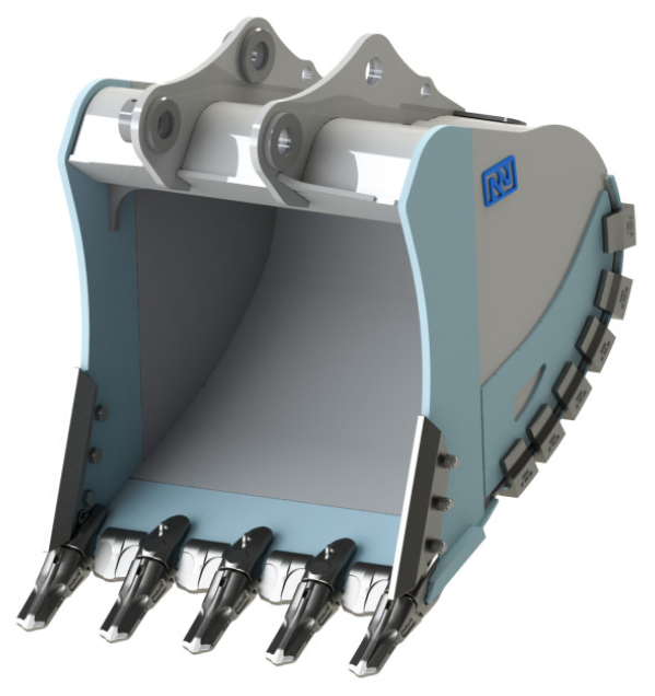 Ковши скальные усиленные разработаны для работы на особо твердых горных породах: базальте, граните, кварце, доломите и т.д. Возможна работа с ударными нагрузками. Для эффективной эксплуатации и повышения прочности конструкция оснащена утолщенными щеками и ножом, а также защитными пластинами из износостойкой стали. Ковши оснащены протектерами для защиты боковины, установлена защита бокового шва и межзубьевая защита. Всё это гарантирует долговечность при работе с высокоабразивными материалами и в экстремальных условиях.