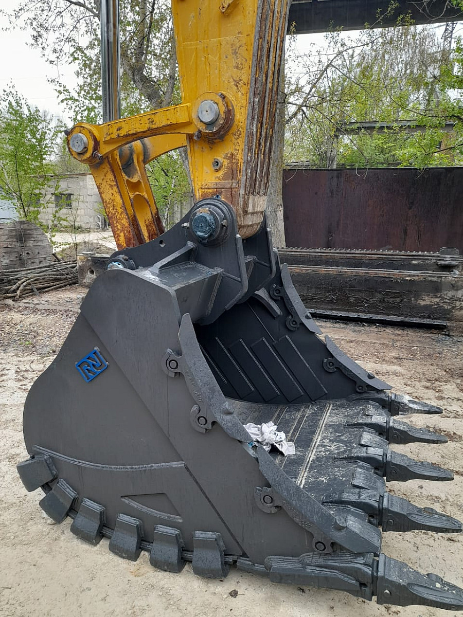 Скальные ковши для экскаватора предназначены для работы с твердыми или спрессованными грунтами и породами, негабаритом, материалами с содержанием кварца и иных абразивных веществ. Утолщенные стенки, щеки и пластины на боковинах обеспечивают высокую долговечность при эксплуатации в трудных условиях. Допустима работа с ударными нагрузками. Разработан для эксплуатации с высокоабразивными породами и спресованными материалами плотностью 1,8-2,5 т/м3. Режущая кромка «дельта», межзубьевая защита, защита углового шва устанавливаются опционально.