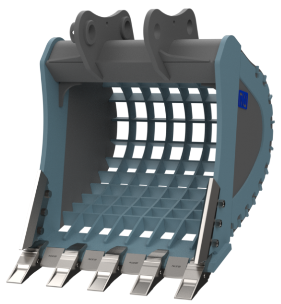 Скелетные просеивающие ковши для экскаватора предназначены для сортировки сыпучего материала перед его дальнейшим использованием или переработкой. Днище состоит из отдельных ребер, которые формируют ячеистую структуру. Такое строение позволяет эффективно отделить мелкие частицы, а также загрязнения от крупных фракций. Расстояние между ребрами варьируется в зависимости от размера необходимой фракции.