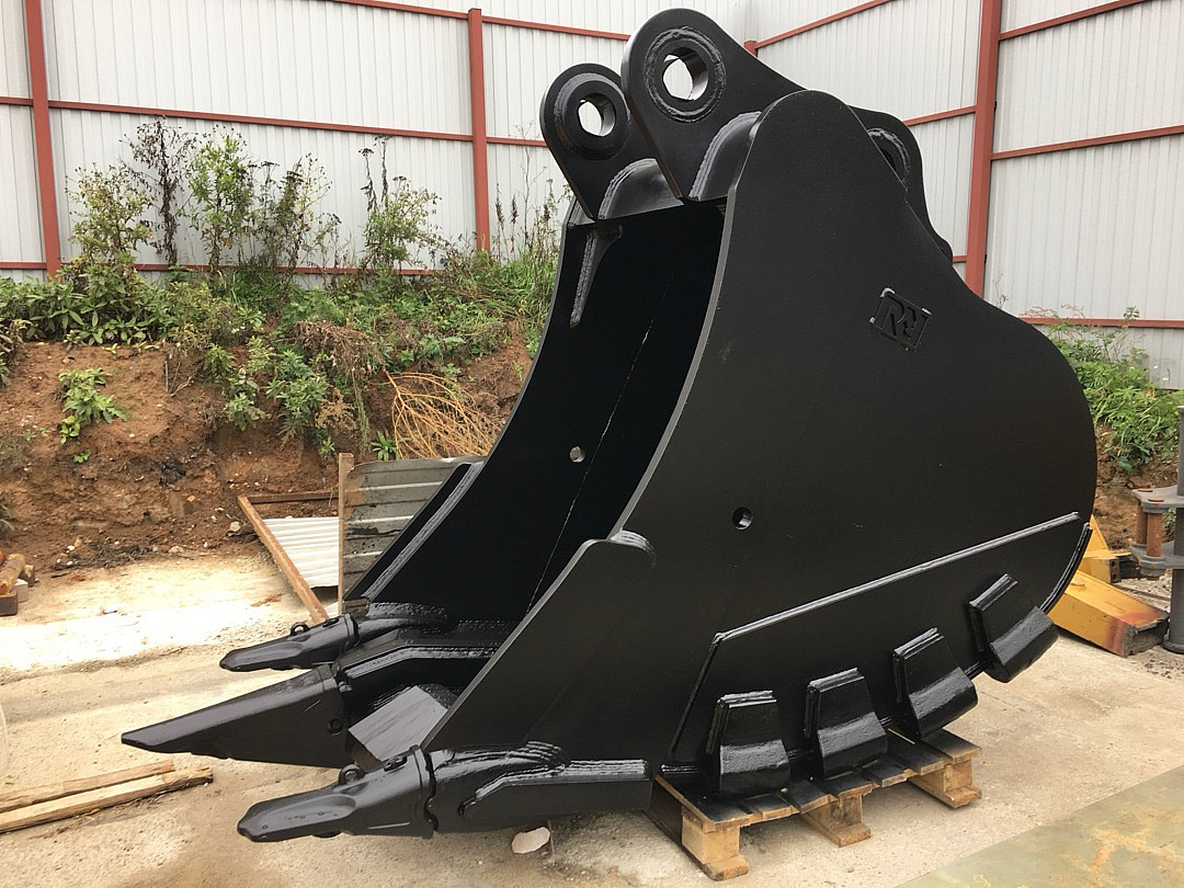 - Ковш обладает узкой чашей, которая легко врезается в мерзлую или каменистую почву. Ударные нагрузки эффективно распределяются за счет ковша. Длинные прочные зубья увеличивают проникающую способность, а усиленное центральное ребро позволяет оборудованию выдерживать значительный вес.