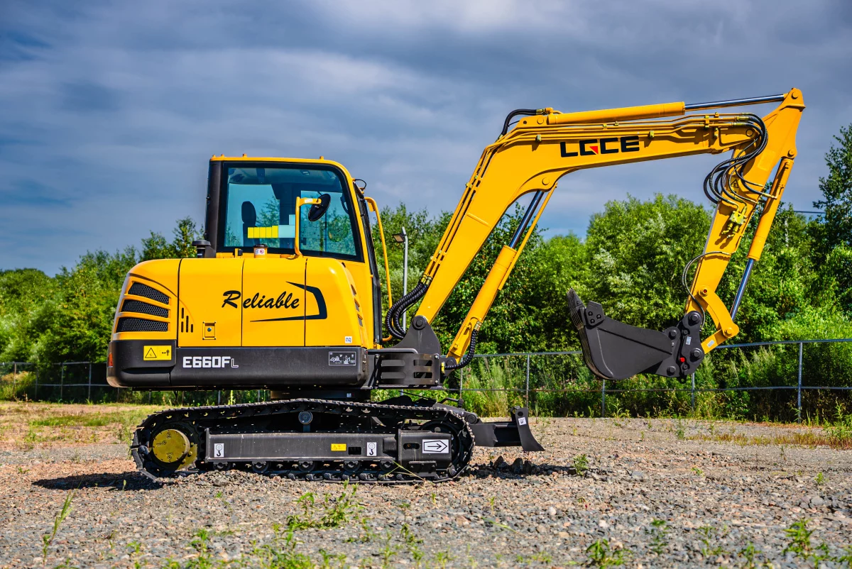 - Мини-экскаватор E660FL с надёжными и эффективными силовым агрегатом Yanmar и компонентами гидравлической системы HengLi.