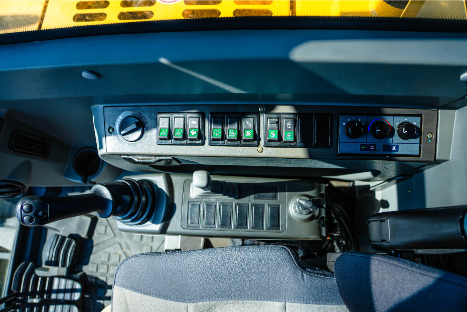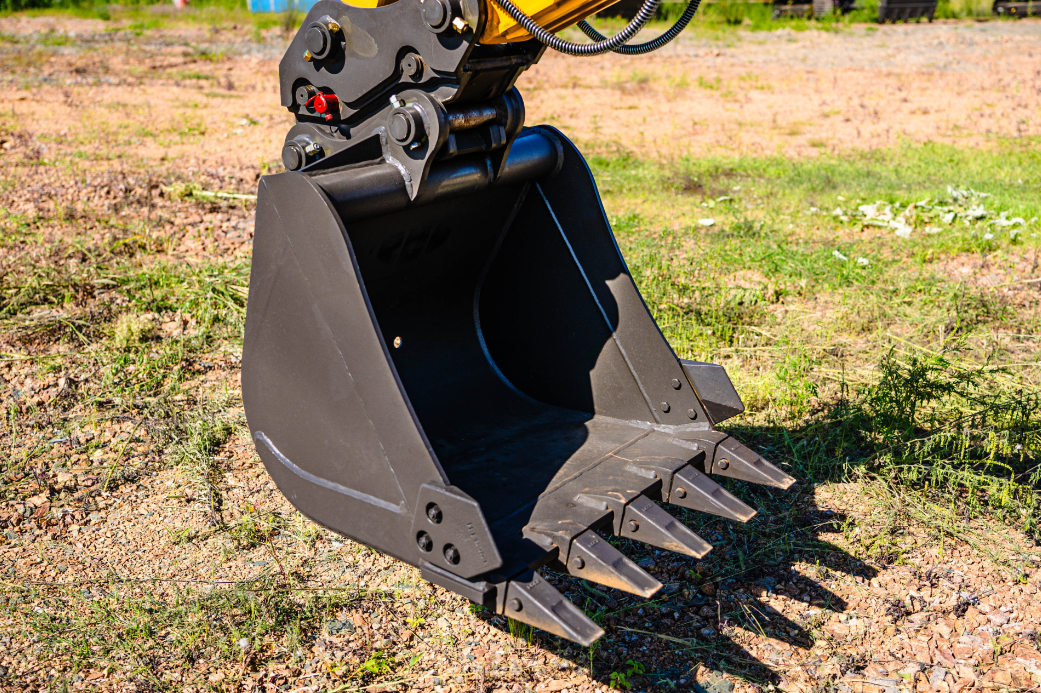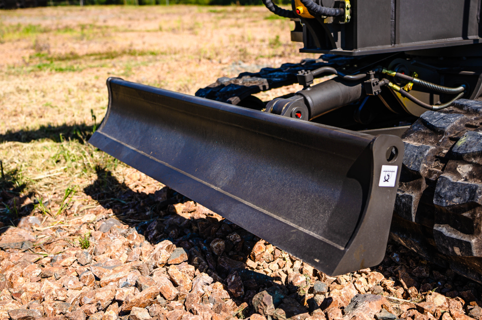 - Оборудован бульдозерным отвалом, увеличивающим устойчивость при выполнении работ. Также позволяет использовать машину для засыпки или планировки.