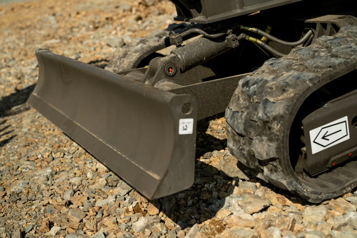 - Оборудован бульдозерным отвалом, увеличивающим устойчивость при выполнении работ. Также позволяет использовать машину для засыпки или планировки.