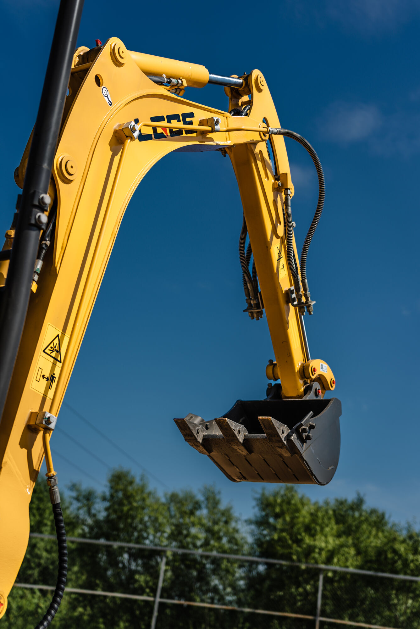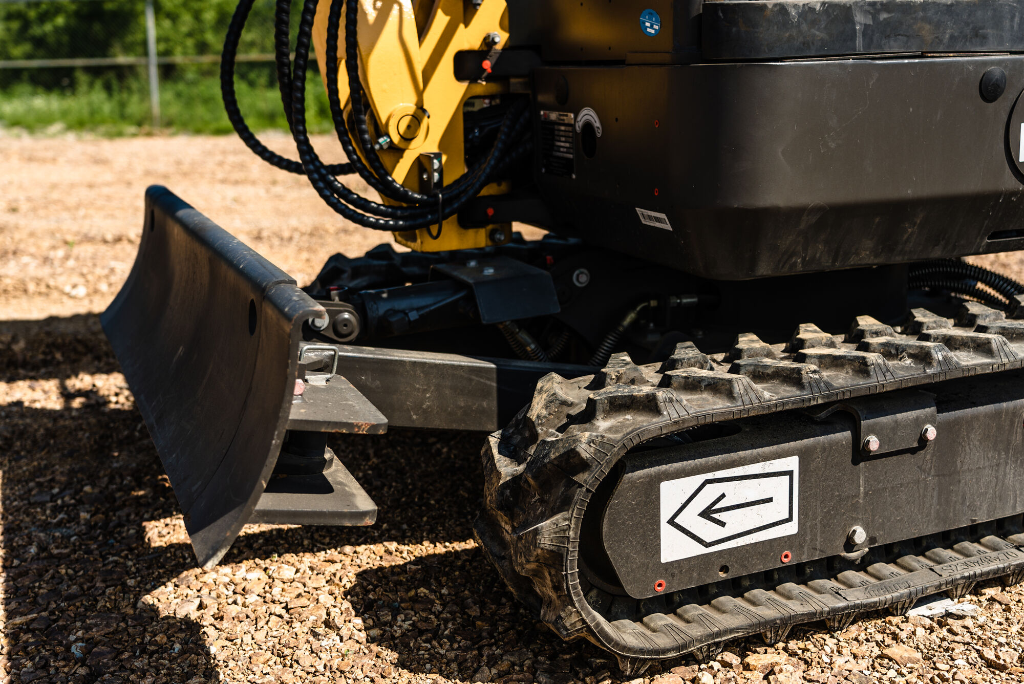 - Оборудован бульдозерным отвалом, увеличивающим устойчивость при выполнении работ. Также позволяет использовать машину для засыпки или планировки.